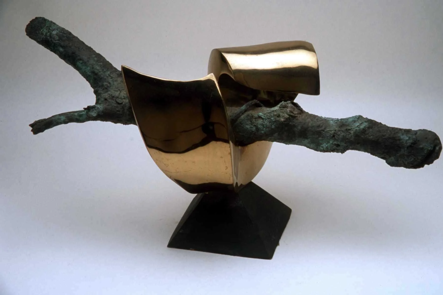 In the 1990s Paulson returned to his interest in metal work, casting directly from carved and found wood and natural objects. The pieces were treated with a naturalistic wood patina to create a trompe-l'œil effect.
